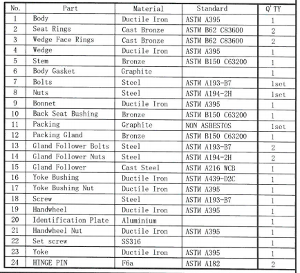 Сделано из ковкий чугун ASTM A395 для обеспечения превосходной прочности и жесткости клапан спроектирован с учетом требований AWWA C515 и API 600 Стандарты дизайна. Внутренняя отделка выполнена в соответствии с Алюминиевая бронза или нержавеющая сталь 316L, обеспечивающий исключительную устойчивость к коррозии и износу, подходящий для длительной эксплуатации в тяжелых рабочих условиях.
